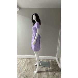 Rosso35 Purple Short Sleeved Linen Dress Size 4 (40)