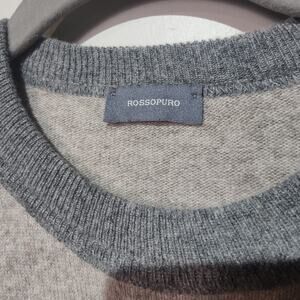 Rossopuro Men's Grey Wool Cashmere Sweater Elbow Patches Crew Neck Pullover