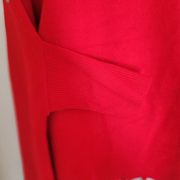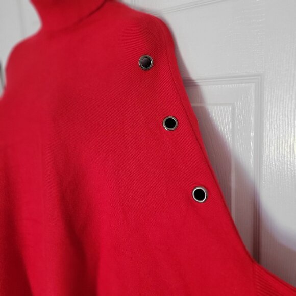 Rosstree Lane Red Turtleneck Poncho Fringe Hem & Metal Hole Details-OS