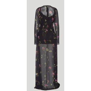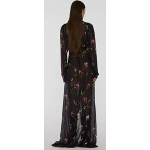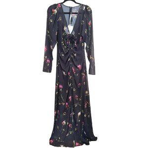 Rotate $469 Floral Size Small Maxi Dress Rosette Ruched Long Sleeve Formal NWT