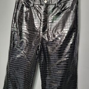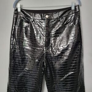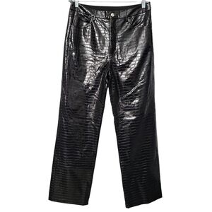 Rotate Birger Christensen Black Croc Embossed Straight Leg Rotie Pants NWT