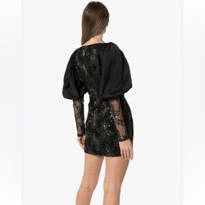 Rotate Birger Christensen Sequin Embellished Puff sleeve Black mini 10 US