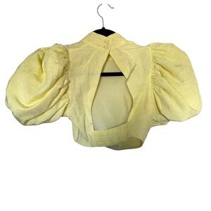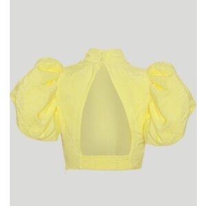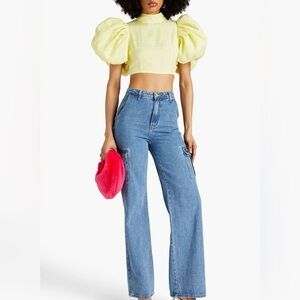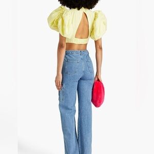 Rotate Dusk puff-sleeve Cutout cropped Satin blouse