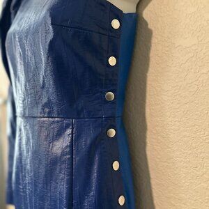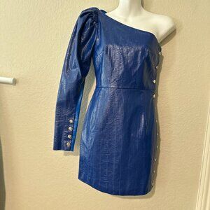 Rotate One Sleeve Blue Faux Leather Two Tone Cocktail Dress, Size 0, NWT