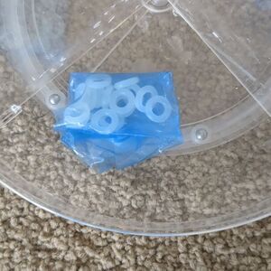 Rotating 360 degree clear adjustable Cosmetic Organizer. Small rubber bands secure shelves. easily assembled.