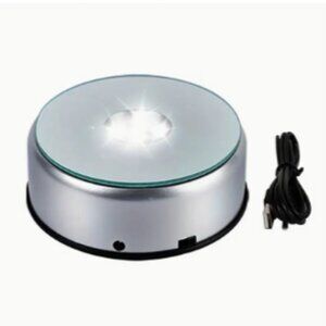 Rotating Display Stand LED Silver Multi-Color Changing Options NWT