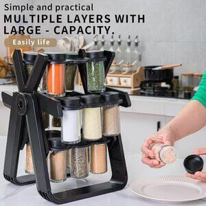 Rotating Spice Rack Organizer, spice jars,18 Glass Jars, 18 jar rotating spice