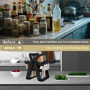 INNOVATIVE DESIGN: Ferris wheel style rotating spice rack measures 10.2""x9""x13.4"", featuring an elegant design that adds style while maximizing counter space organization