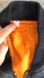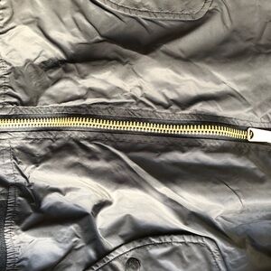 This black Rothco MA-1 bomber has an orange interior and the inner filling has been removed to make it a slimmer fit, and it’s been slightly stonewashed, you’ll notice it on the snaps for the pockets as the coating has chipped off a little to give appearance of it being worn. It’s still very sturdy material , just less sheeny and puffed up. This has not been worn, it’s actually new and was part of a test for further development, so it’s like a used blank for whatever you’d like to add to it.