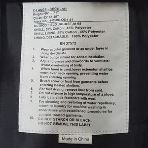 Rothco Field Jacket M-65 Men's Size XL Detachable Lining Winter Outerwear.