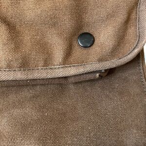 Canvas military/map/adventure bag. Hard back side. Adjustable strap. Lots of storage. Embroidered Tesla Industries patch. There is some wear on edges and some fading on front of bag. But has tons of life left and can still hold a lot. See pics of measurements