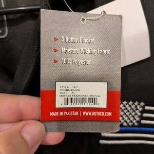 New With Tags Rothco XL 100% polyester moisture wicking Thin Blue Line polo shirt. Embroidered Thin Blue Line flag. Item has not been washed due to still having tags.