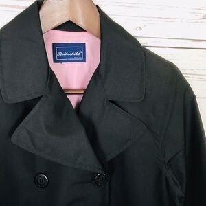 Rothschild Black Double Breasted Rain Trench Coat Girls Size Large Pink Lining