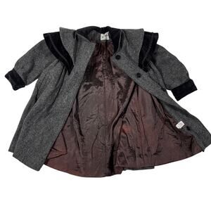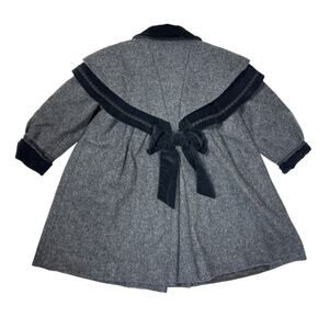 Rothschild Child's Wool Coat Sailor Collar Black Velvet Bow Girl Size 4 Rare Vtg