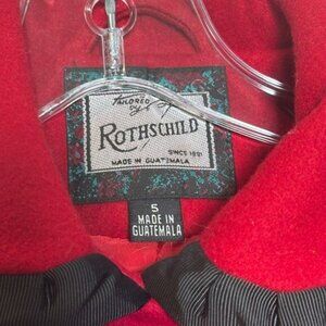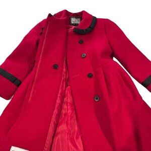 Rothschild Girls 5 Red Wool Pea Coat Button Dress Bow Accents Pleated Old Money