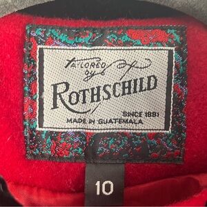 Rothschild Girls Wool Blend red Pea Coat with black details size 10