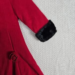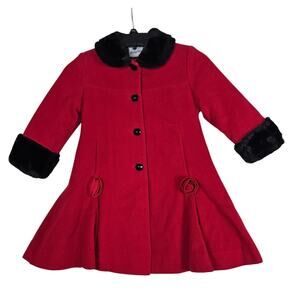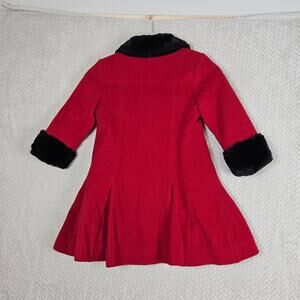 Rothschild Wool Dress Coat Girls 4T Red Faux Fur Trim Holiday Classic Vintage