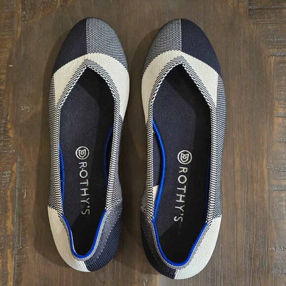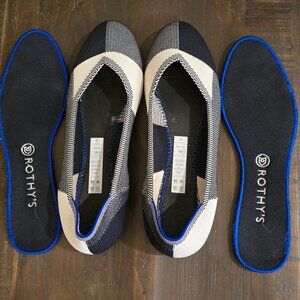 Rothy's "The Flat" style shoes, dark navy and cream color. Size 11 wide, worn only a few times. In excellent, clean condition.