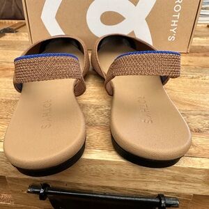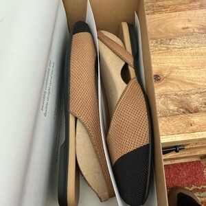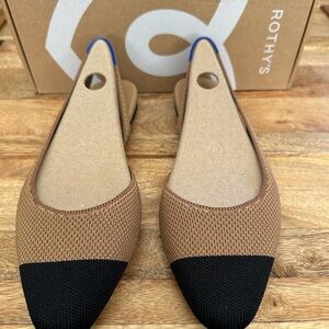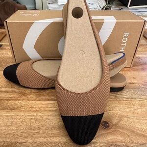 The Rothy's The Almond Slingback in Tawny Captoe is a sustainable flat shoe knit from recycled plastic bottles featuring a sleek almond-toe profile and a durable rubber outsole. NEW/ smoke free home