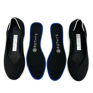 🫏 Rothy's Ballet Flats Size 7 Eco-Friendly Sustainable Black And White Washable, Vegan, Lightweight, Breathable, Round Toe, Slip-On Comfortable Shoes.