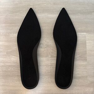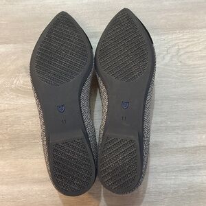 Stylish flats with a pointed toe. Black and gray herringbone pattern. Comfortable and versatile.