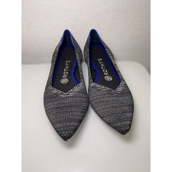 Stylish Rothy's flats. Black and gray knit design. Comfortable and chic.