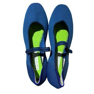Rothys Shoes WMNS 8 Blue Ballet Flats The Square Mary Jane Vegan Leather Outsole