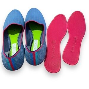 Rothy’s Bluebell Triple Stitch Loafers retired blue pink green sz 11.5 flats EUC