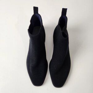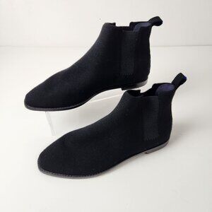 Rothys Boots Womens 9.5 Black Merino Ankle Bootie Knit Pull On Flat Heel