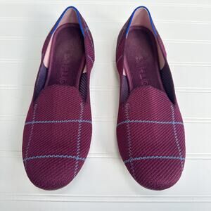 Rothy’s Burgundy Plaid Knit Loafers Women’s Slip-On Flats Washable Shoes Size 8