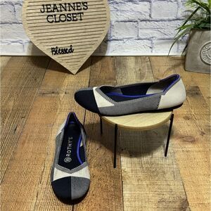 Rothy's Captoe Buffalo Plaid Black & White Ballet Flats Women's 7.5