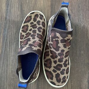Elevate your shoe game with these stylish and comfortable Rothy's Chelsea boot Wildcat high top sneakers. The brown animal print synthetic upper material is perfect for the animal lover, and the round toe shape ensures a comfortable fit. The slip-on closure and flat heel height make them perfect for everyday wear, while the cushioned and breathable features make them suitable for all seasons.