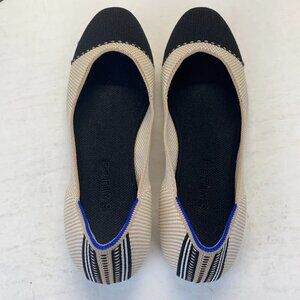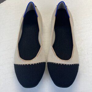 Rothy’s Cream Black Knit Round Toe Ballet Flats Slip-Ons Size 10,Womens Shoes