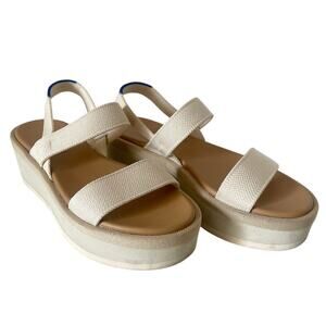 Rothy's Cream The Lightweight Wedge Platform Strappy Sandal in Salt • Size 5.5