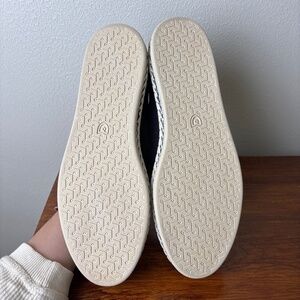 Sustainable style meets casual elegance in these Rothy’s Espadrille Flats in Women’s US size 12, new without tags. Featuring a classic black knit upper accented with bold blue trim and a woven espadrille-inspired midsole, these shoes are perfect for warm-weather wear while staying eco-conscious.