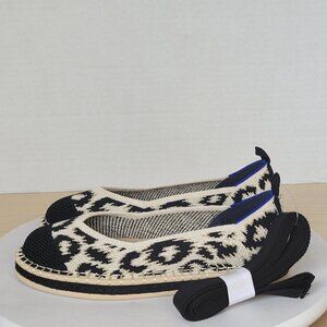 NWOB Rothy's Flat Ankle Strap Espadrille Leopard Print Sandy Cat Color Sz 6.5