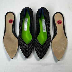 Rothys High Point Black Star Studded Woven Black Silver metallic Slip On 10