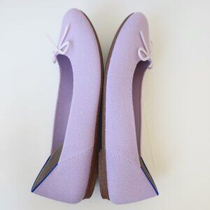 Rothy's ballet flats in the color Bellflower, a pretty lavender purple with a touch of bright blue at the heels. Size 9.5