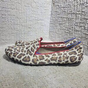 Rothy's Leopard Print Flats with Blue and Red Accents