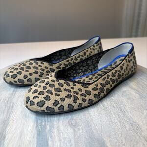 Rothy’s Leopard Print Rounded Toe Red Stripe Slip-On Ballet Flats US Size 6 M