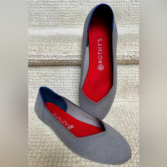 Rothy's Light and Dark Blue Grey Weave Slip On Classic Flat Red Insole Washable