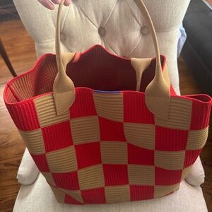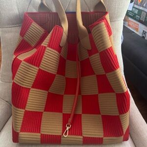Red and tan checkered. Very pretty bag! Perfect for fall. Used once. In like new condition. Store exclusive, hard to find.