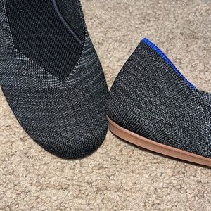 Rothy's Melange Knit Ballet Round Toe Flat Heathered Black 9.5. Go from morning to midnight in this classic Rothy’s flat that adds well-rounded style to every look. Modern take on timeless silhouette. With a special melange knit and tan rubber outsoles its the wardrobe staple that does it all. Endlessly versatile, washable and comfortable, it's made to last seasons. Plus, it's knit from plastic bottles. Soft, flexible upper-which means no break-in period, ever. Comfortable insoles and durable outsoles. Fully machine washable, so they're like new again and again. If wider than B-width, consider 1/2 size up. Fully washable. Great pre-owned condition. No stains/flaws. Smoke/pet free home. Offers welcome. Bundle & save. Ship same/next day. Packaged w/ care.