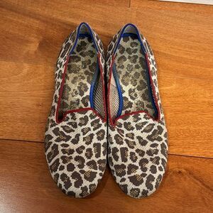 Rothys Mocha Spot Animal Leopard Print Round Toe Flat Shoe Loafers Size 8 in excellent condition.