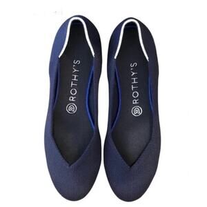 EUC Rothy’s Navy Blue with White Accent Slip On Flats size 9. Like new condition, worn 1 time. Round toe, lightweight and super comfortable. LYM