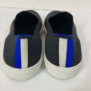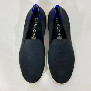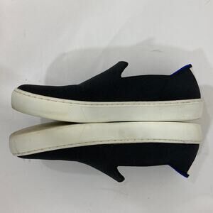 Rothy's black The Original Slip On Sneaker in ladies size 7. In very nice pre owned condition. The uppers look beautiful. Slight soiling /discoloration on rubber soles from normal light wear is the only notable sign of wear. Soft, flexible upper in black, Comfortable insoles in black and durable outsoles in white. Features a Rothy's blue and white heel stripe for a sporty touch. Fully machine washable, so they're like new again and again.