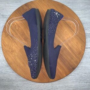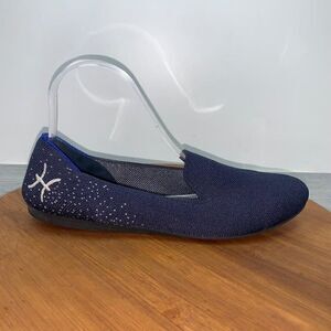 Rothys Pisces Zodiac Loafers Size 8.5 Dark Blue Silver Threading Slip On Round