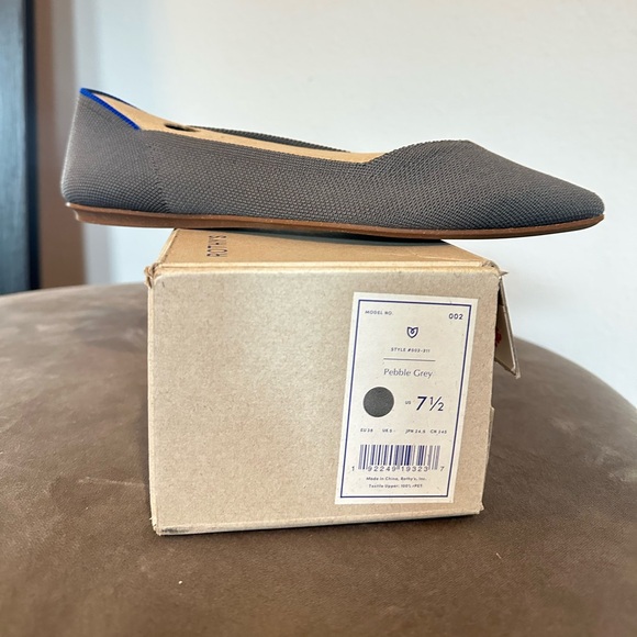 Women's Point flats, pebble grey, size 7.5. Minimal wear, original box, non-smoking home. The inserts are removable for wash, stain free. You can also wash the exterior of the shoe and air dry. I have only washed the inserts. I am a true size 7 and order half size up in the Point to allow for toe space.