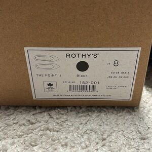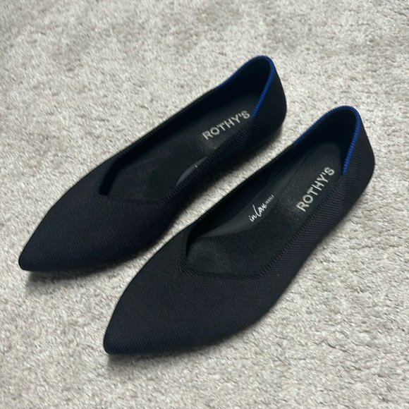 Like new black Rothy’s Point II. “In love” insoles. With box. Worn a few times, just didn’t fit. Perfect condition. Size 8.