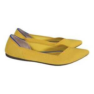 Rothys Pointed Toe Flats - Stylish Women's Ballet Shoes 8.5 Yellow Knit